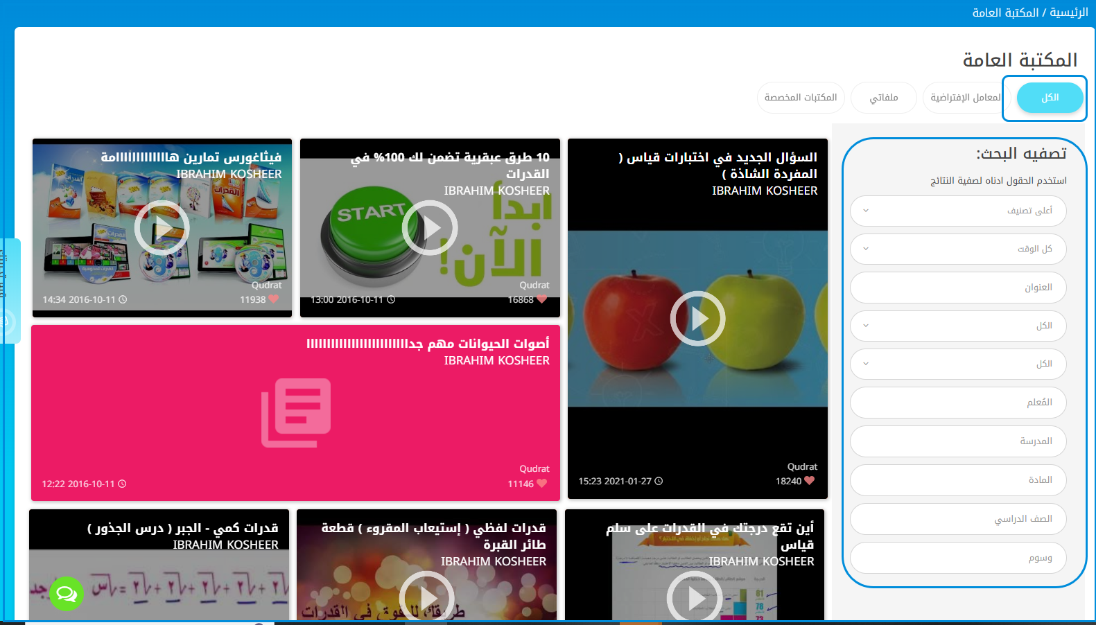 تُتيح لك المكتبة العامة استخدام LMS للبحث عن محتوى تعليمي من أي مدرس أو مدرسة في أي مكان في العالم. يُمكنك القيام بذلك باستخدام مرشح البحث.