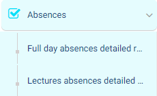 This feature allows you to generate students’ full-day absences detailed report and students’ lectures absences detailed report.